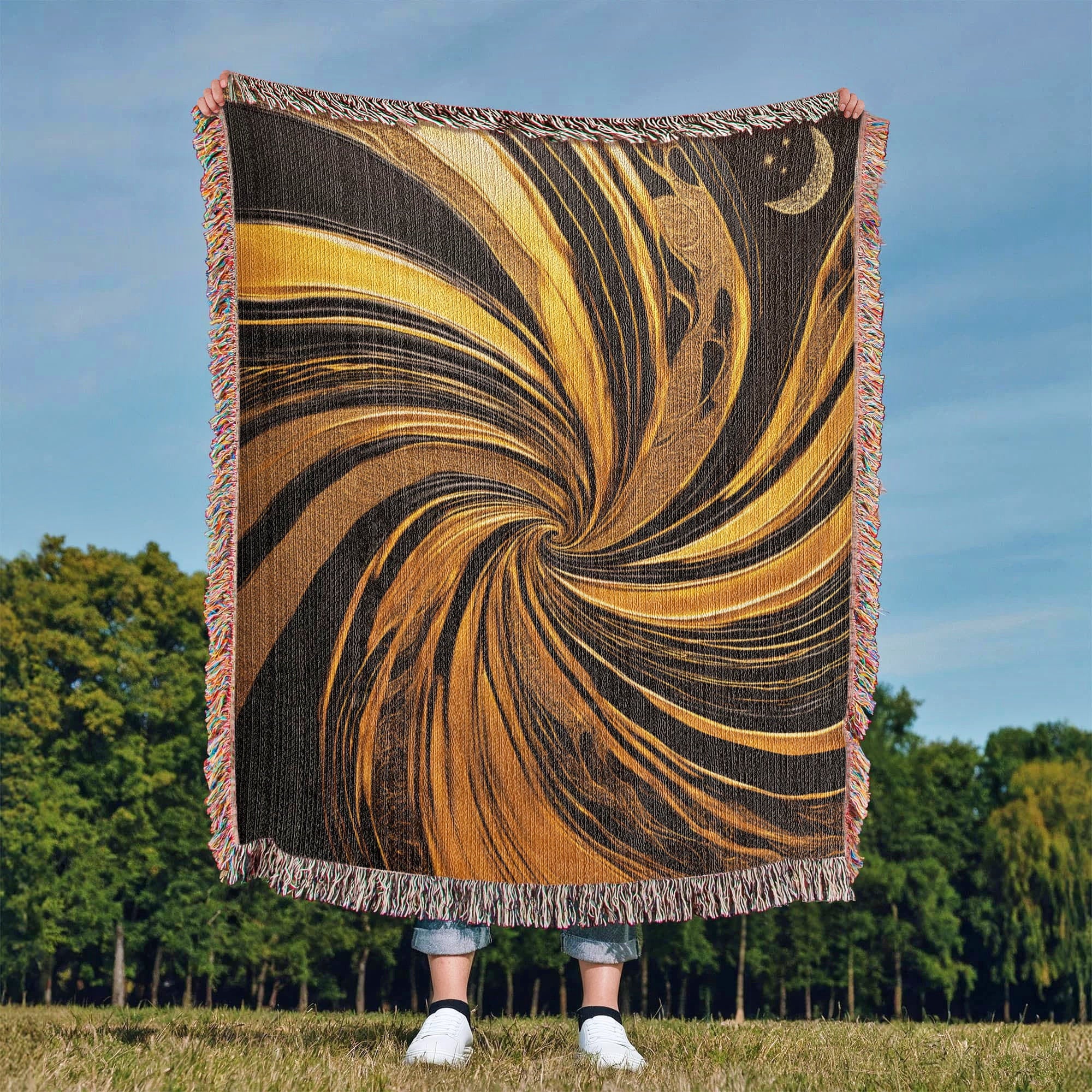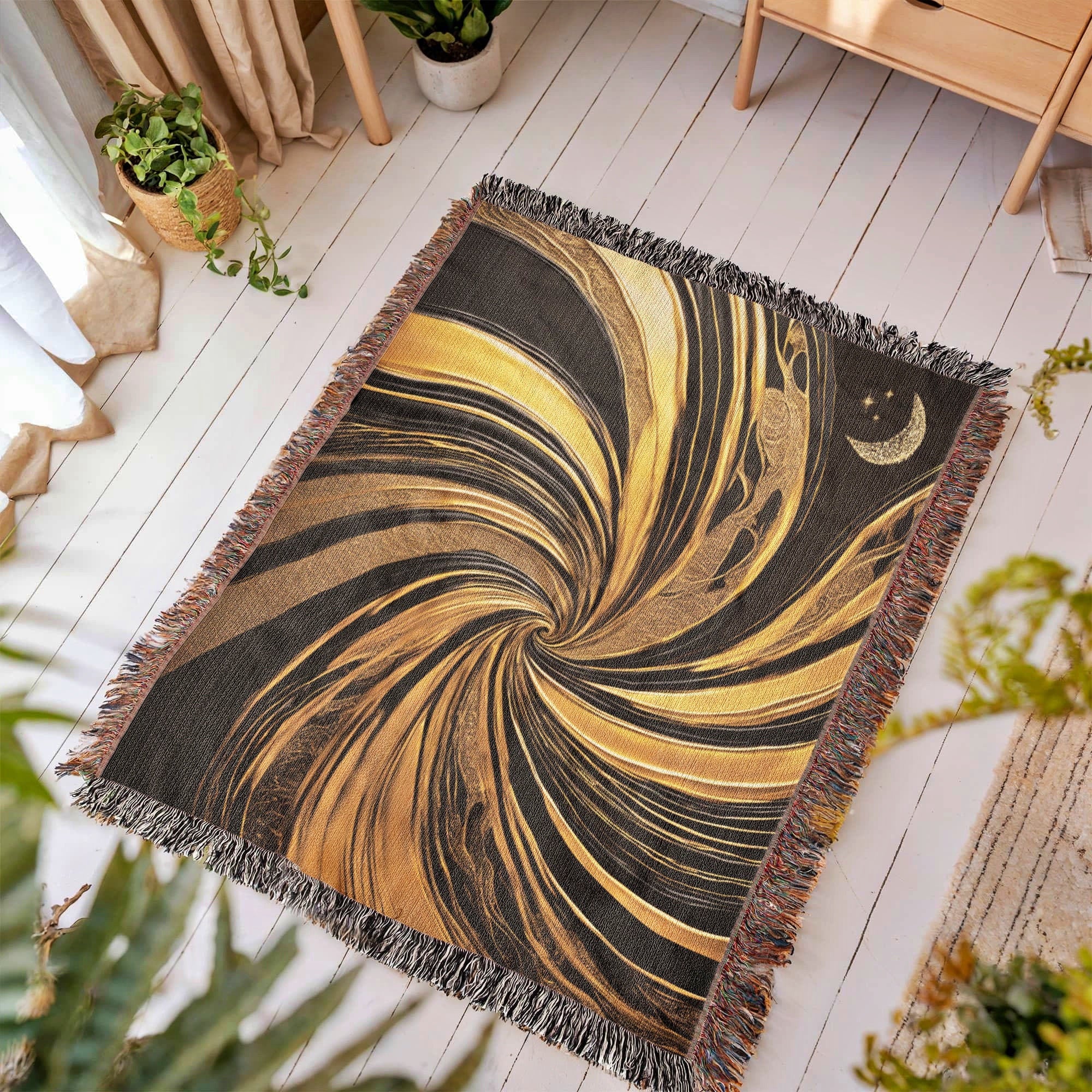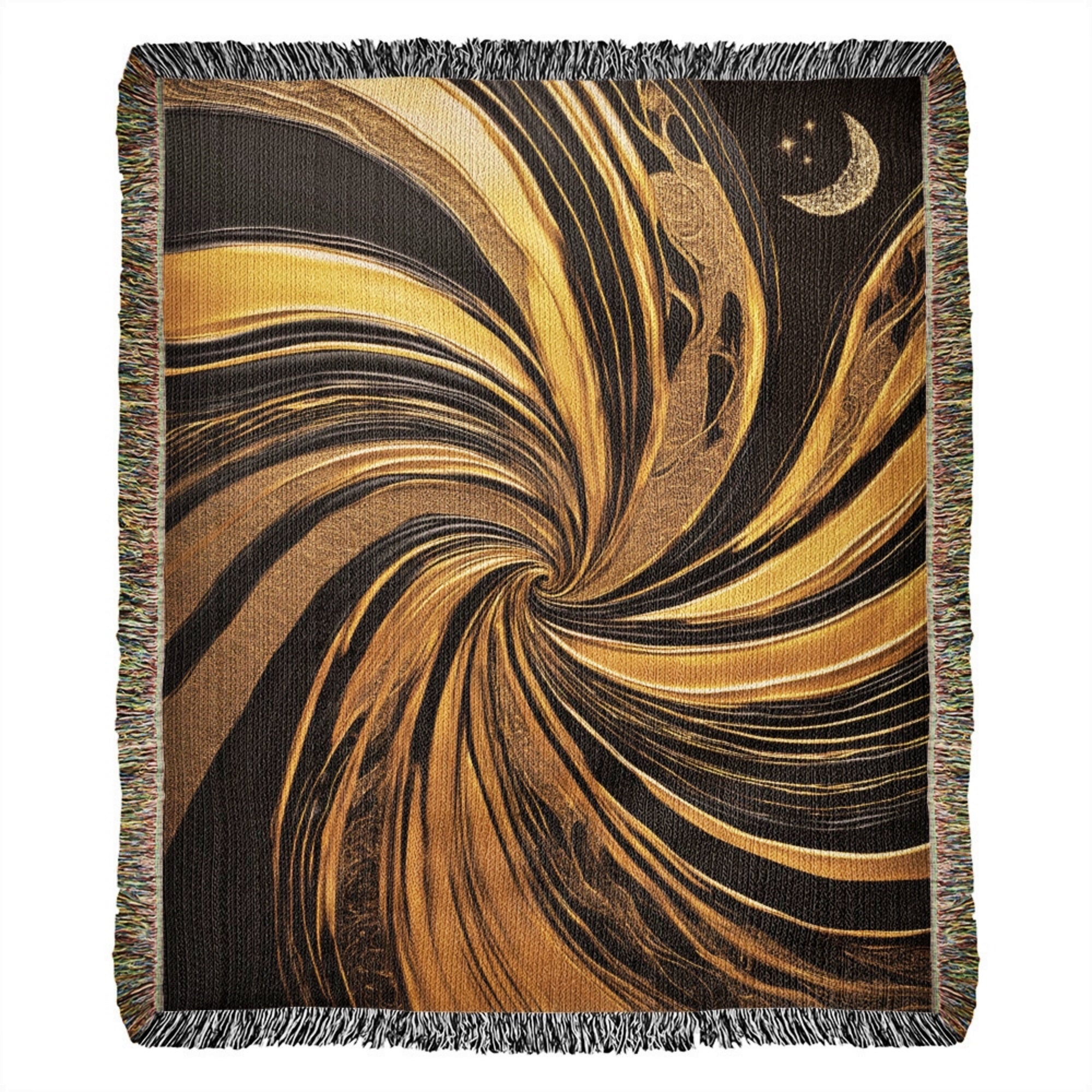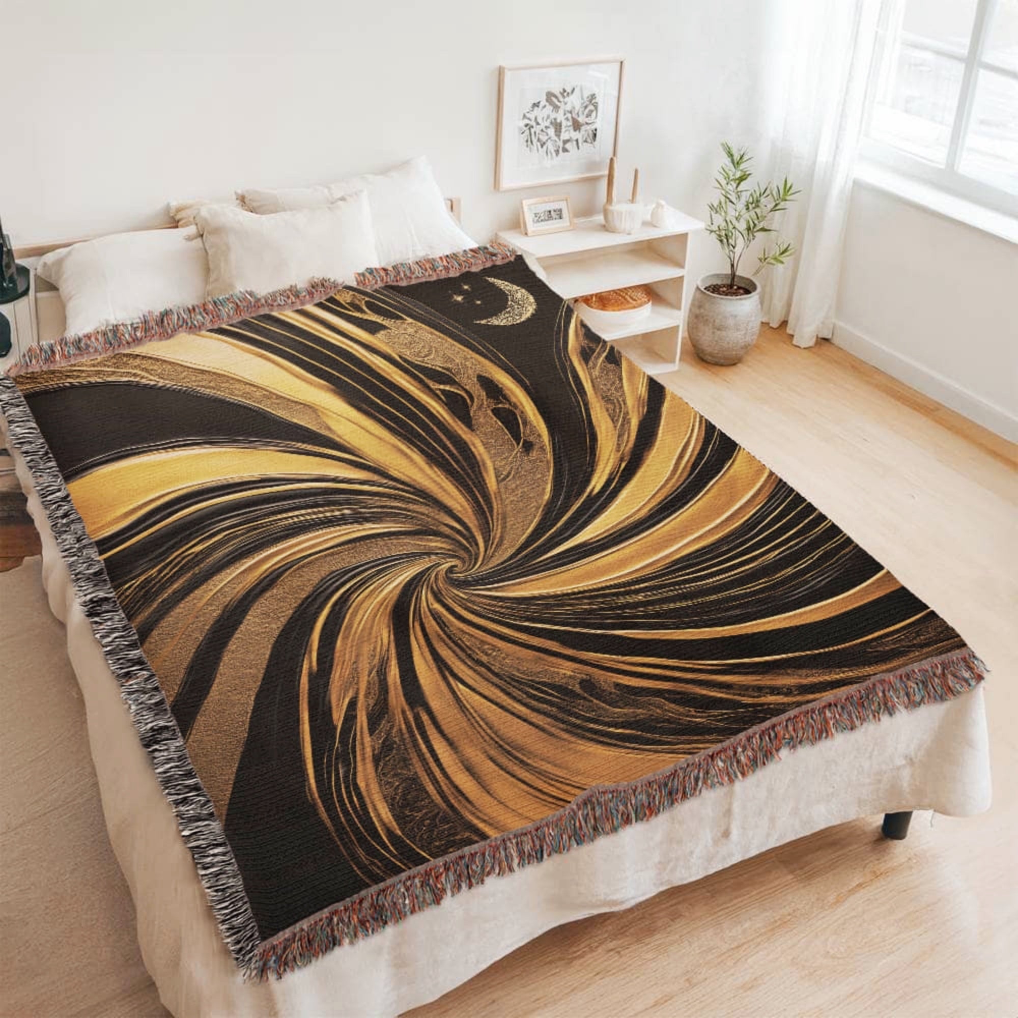 Elevate your home décor with our Contemporary Black & Gold Abstract Woven Throw Blanket, a striking blend of modern art and cozy comfort. Crafted from 100% premium cotton, this blanket combines timeless durability with a soft, breathable feel. Featuring a bold abstract design in rich black and gold tones, it adds a touch of sophistication to any living space—whether draped over your sofa, layered on your bed, or displayed as wall art.