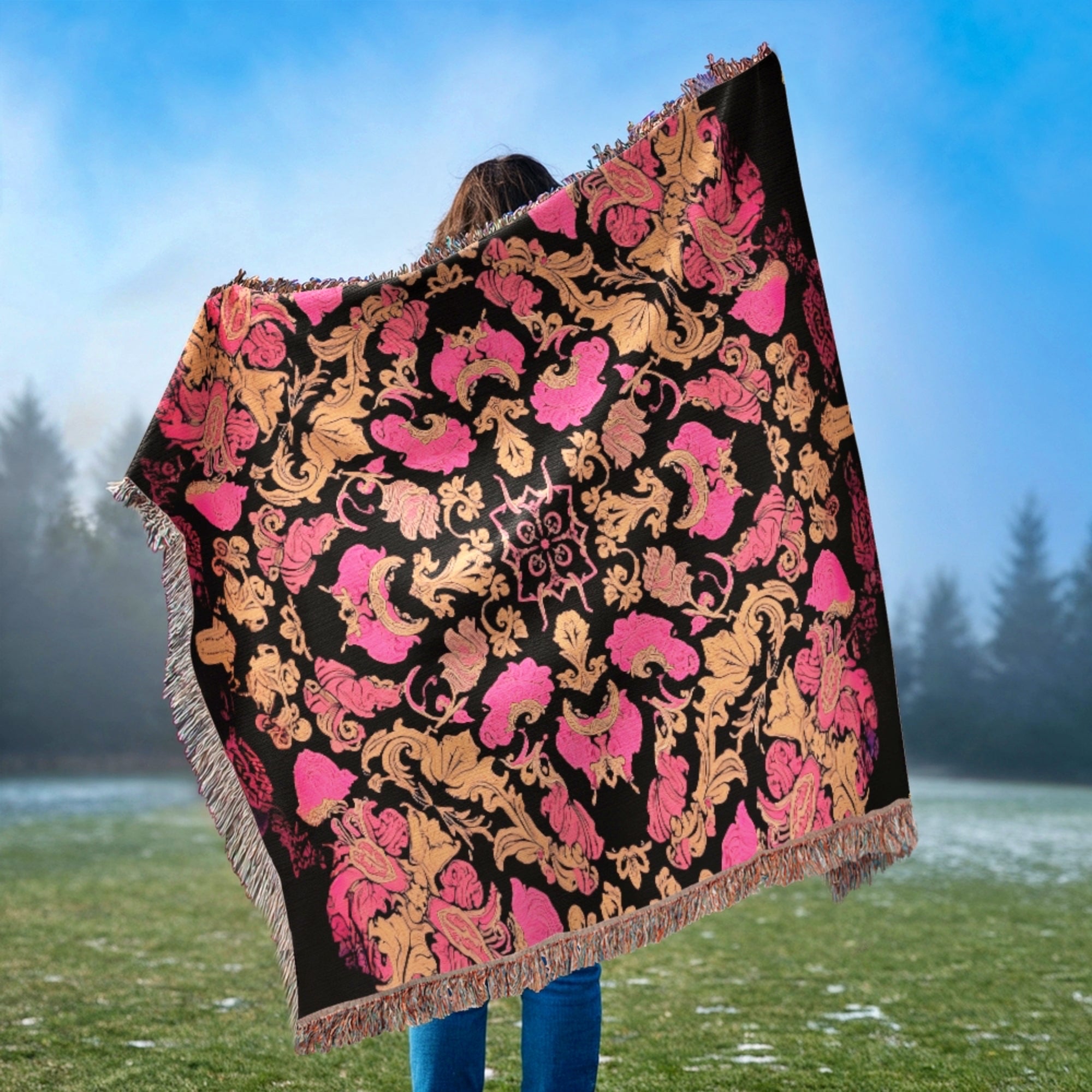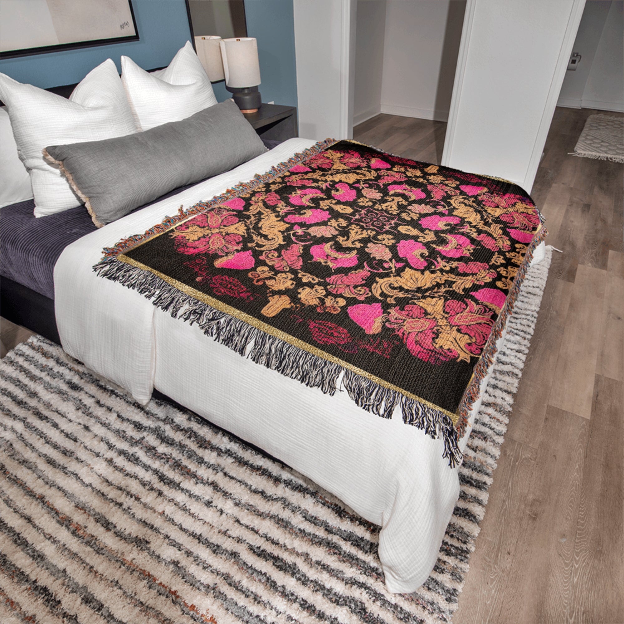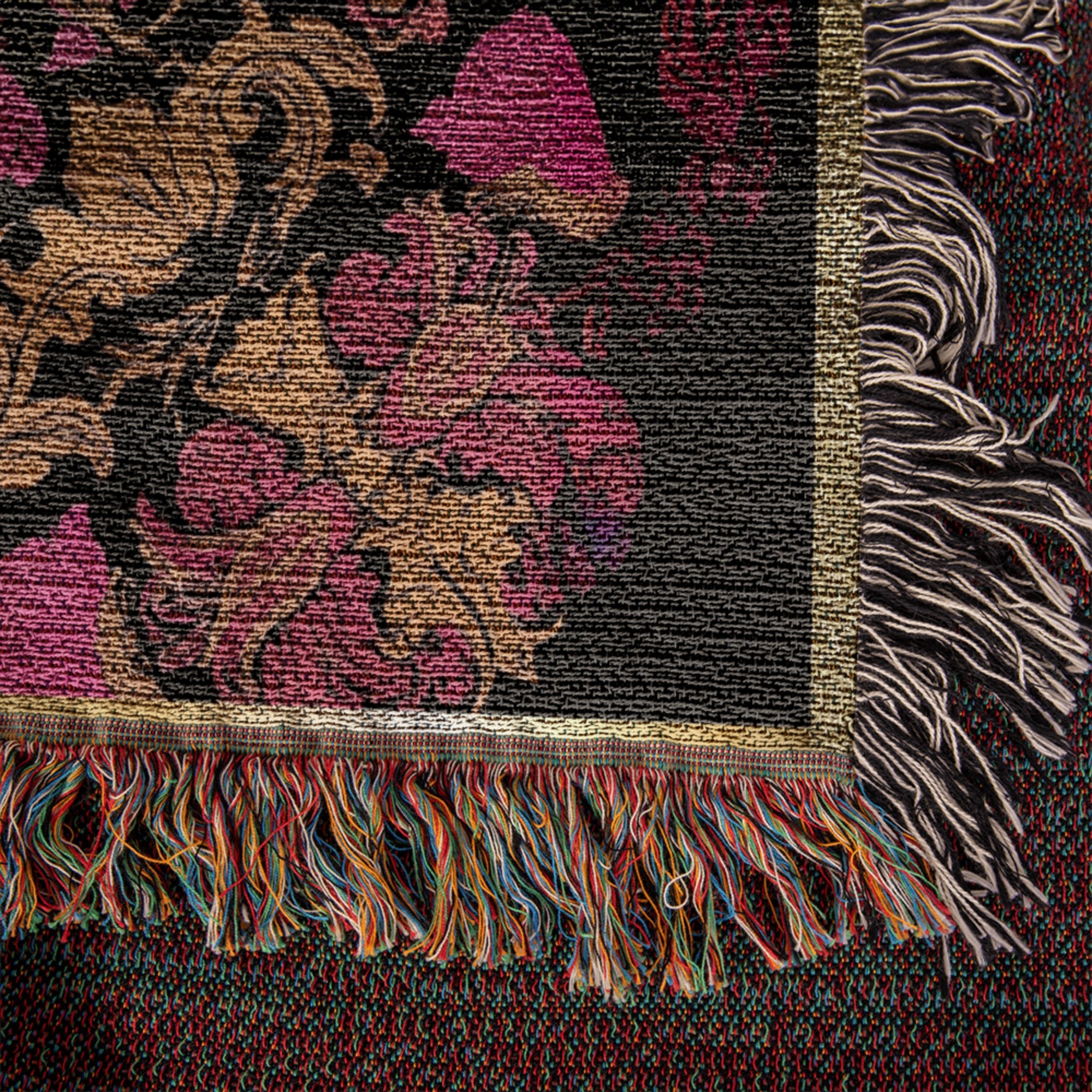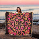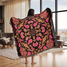 Luxury Pink Black Gold Woven Cotton Blanket Throw